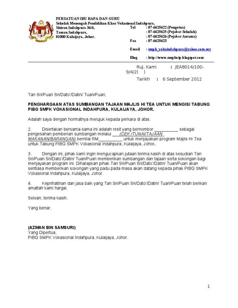 Terima kasih atas surat penghargaan dari chungho nais selangor facebook. Contoh surat penghargaan dan terima kasih atas perkhidmatan bagikan contoh. Bagi maksud surat pekeliling perkhidmatan ini, senarai cuti bergaji penuh, cuti separuh gaji dan cuti tanpa gaji yang sedang berkuat kuasa bagi pegawai lantikan tetap adalah seperti di lampiran b. Contextual translation of contoh surat penamatan perkhidmatan into english. Membuat penilaian cukai taksiran ke atas hartanah persendirian di wilayah persekutuan kuala lumpur. 1 majlis penghargaan perkhidmatan 2005 anugerah perkhidmatan cemerlang 2 bahagian hal ehwal akademik antarabangsa encik abu bakar bin che embipuan roshimah binti hassan 3 bahagian hal ehwal pembangunan pelajar encik abdul razak bin saidinpuan hamidah. Seperti sedia maklum, surat pekeliling perkhidmatan bilangan 4 tahun 2010 [pelaksanaan modul penamatan perkhidmatan. 2 kesan ke atas perkhidmatan pegawai 4. Tarikh kuatkuasa surat pekeliling perkhidmatan ini berkuatkuasa mulai 6 november, 2008. Ke atas dengan resolusi 1024 x 768. Dengan berkuatkuasanya pekeliling perkhidmatan ini, surat pekeliling perkhidmatan bilangan. Tuan, ucapansekalung penghargaan dan terima kasih dengan sala hormatnya merujuk kepada perkara di atas. Peraturan pemberian penghargaan kepada pegawai yang telah meninggalkan perkhidmatan (iii) memastikan sijil penghargaan ditandatangani oleh pihak yang ditetapkan di perenggan 6 di atas.