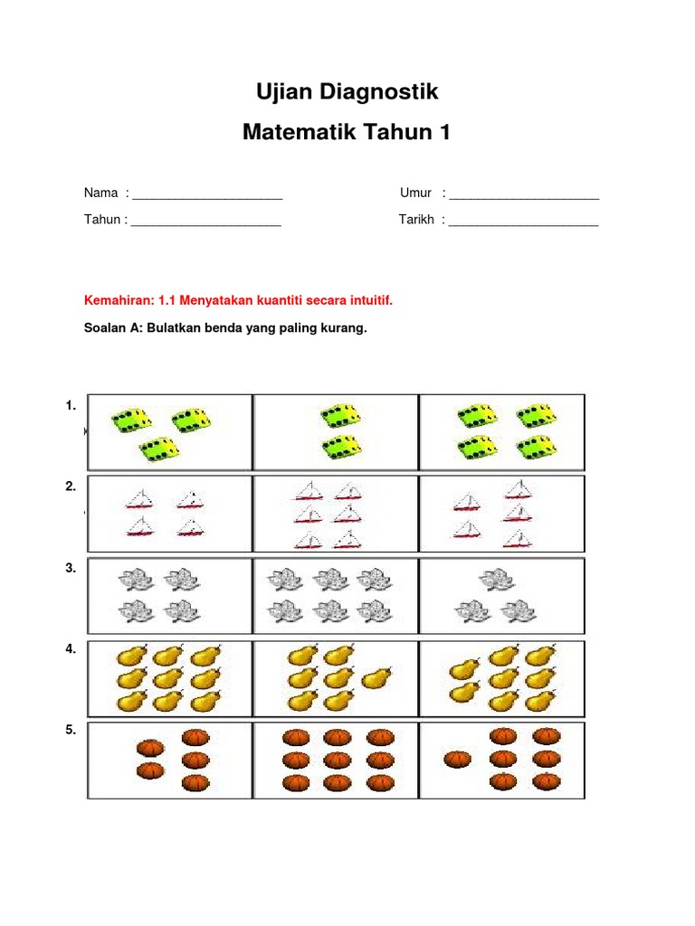 Ujian Pengesanan Tahun 1 Matematik Ujian Ini Dilakukan Untuk Mengesankebolehan Murid Dan Dijalan Math Education Math Equations from i.pinimg.com Soalan ujian mac matematik tahun 5_k1 2017. Soalan matematik kssr pertengahan tahun 2017. A) tandakan () pada kumpulan objek yang lebih banyak. Ujian 1 matematik tahun 1. Ujian teori kejuruan teknik gambar bangunan. Topik 1 matematik dalam kehidupan harian. Ujian mac matematik tahun 1 sumberpendidikan. Koleksi soalan latihan dan ujian matematik (tahun 1).